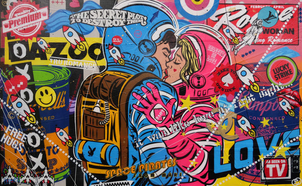 Rogue Love 160cm x 100cm Space Cadets Kissing Textured Urban Pop Art Painting (SOLD)