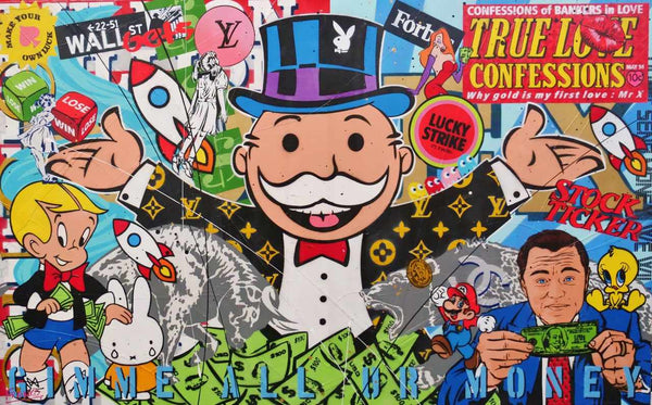 Strike It Lucky 160cm x 100cm Monopoly Man Textured Urban Pop Art Painting (SOLD)