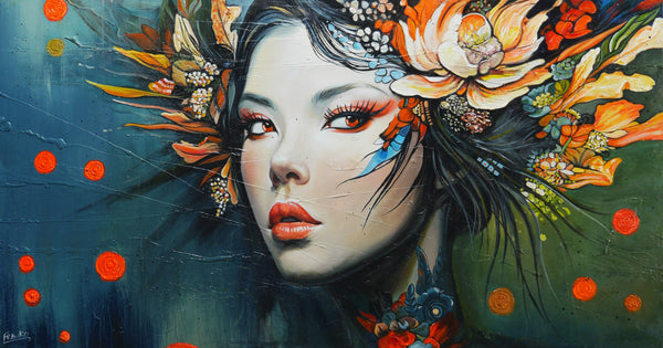 The main focus of this collection is the "Abstract Realism" Heads series. This series features varied subject matter including Geishas, Native Americans, Aboriginals, sporting legends and lots of pop icons such as Marilyn, Hendrix, Lennon, Williams, Prince, Bowie to name a few. These pieces are always created by hand, brush and spatulas with acrylics and textured oils (no spray or screen-printing). They feature 100% textured bases and often feature hand created stippling. They are super immersive to produce.