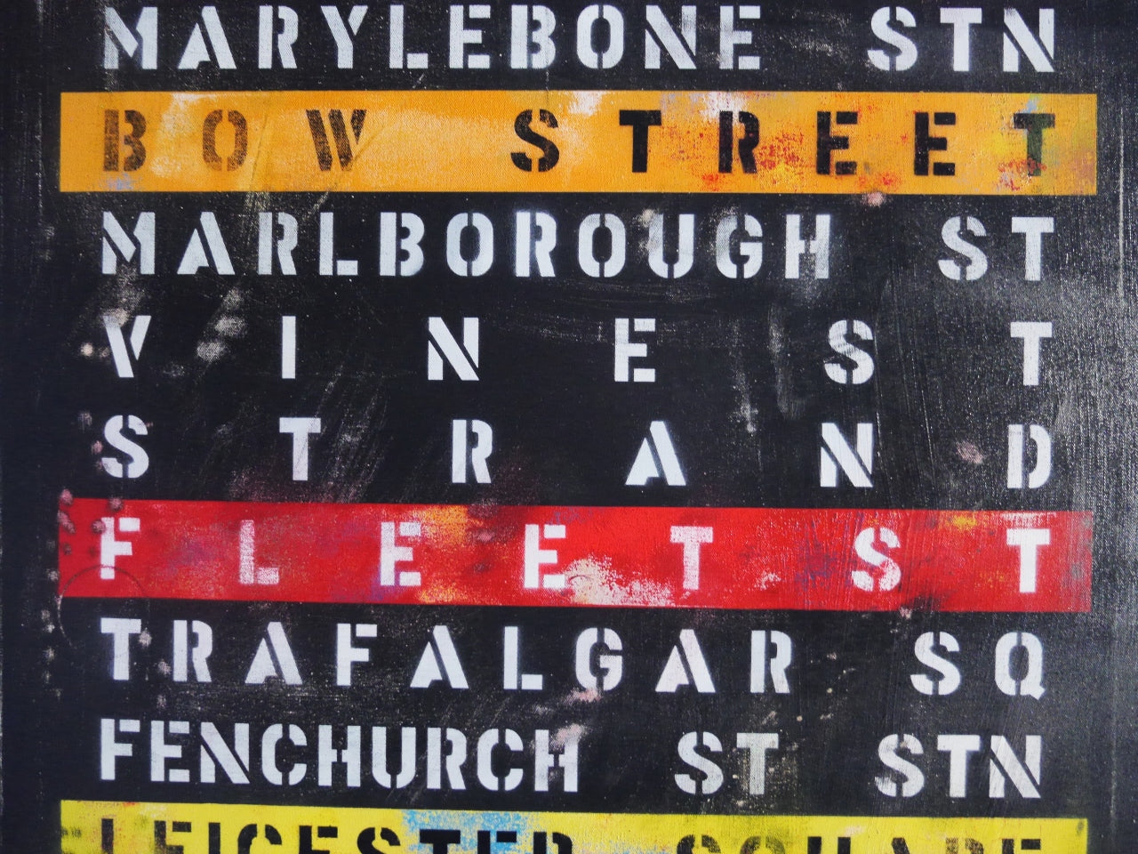 Hey there spunky! Thank you for checking out... “Big Bonds” which is the latest in this ongoing series and features red, orange, yellow, green, blue, brown, pink, white and black acrylics, sugar sprays and inks. This canvas has been made to look weathered as a vintage Parody version of a bus scroll as Mr Monopoly would see it!