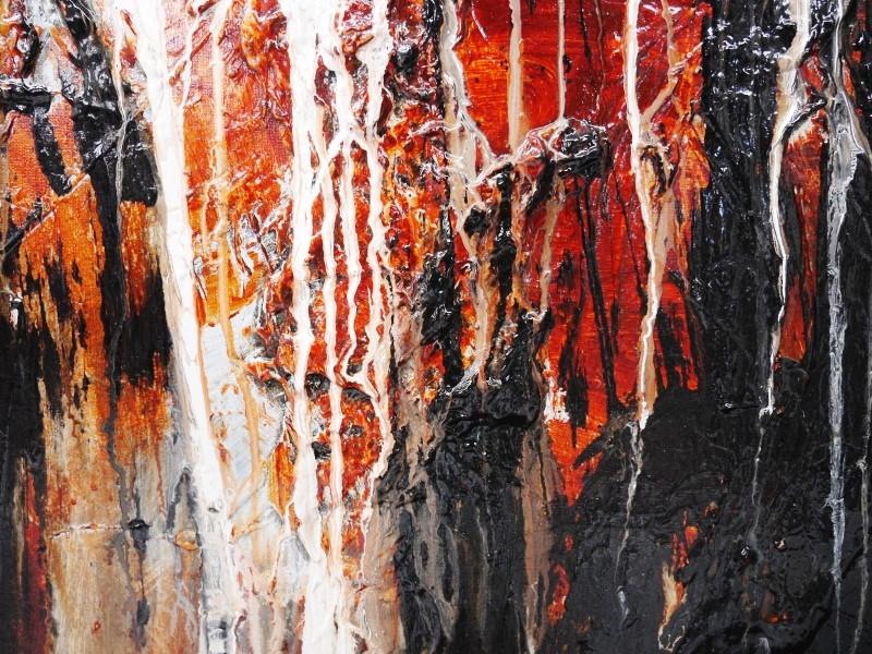 All of my abstracts come off a deep base and always include textured layers from the base to the top. This painting, like all of my pieces, is a mixture of acrylics, inks and milked sugars with intermittent use of oil based layers.