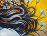 Hello spunky art lover! It's great to see you looking in on “Evande” originating from Greek mythology. This beauty is the latest addition to my "Heads" series and features red, orange, yellow, olive green, blue, teal, pink, purple, turquoise, black and white acrylics, inks and oils on a textured and layered canvas base.