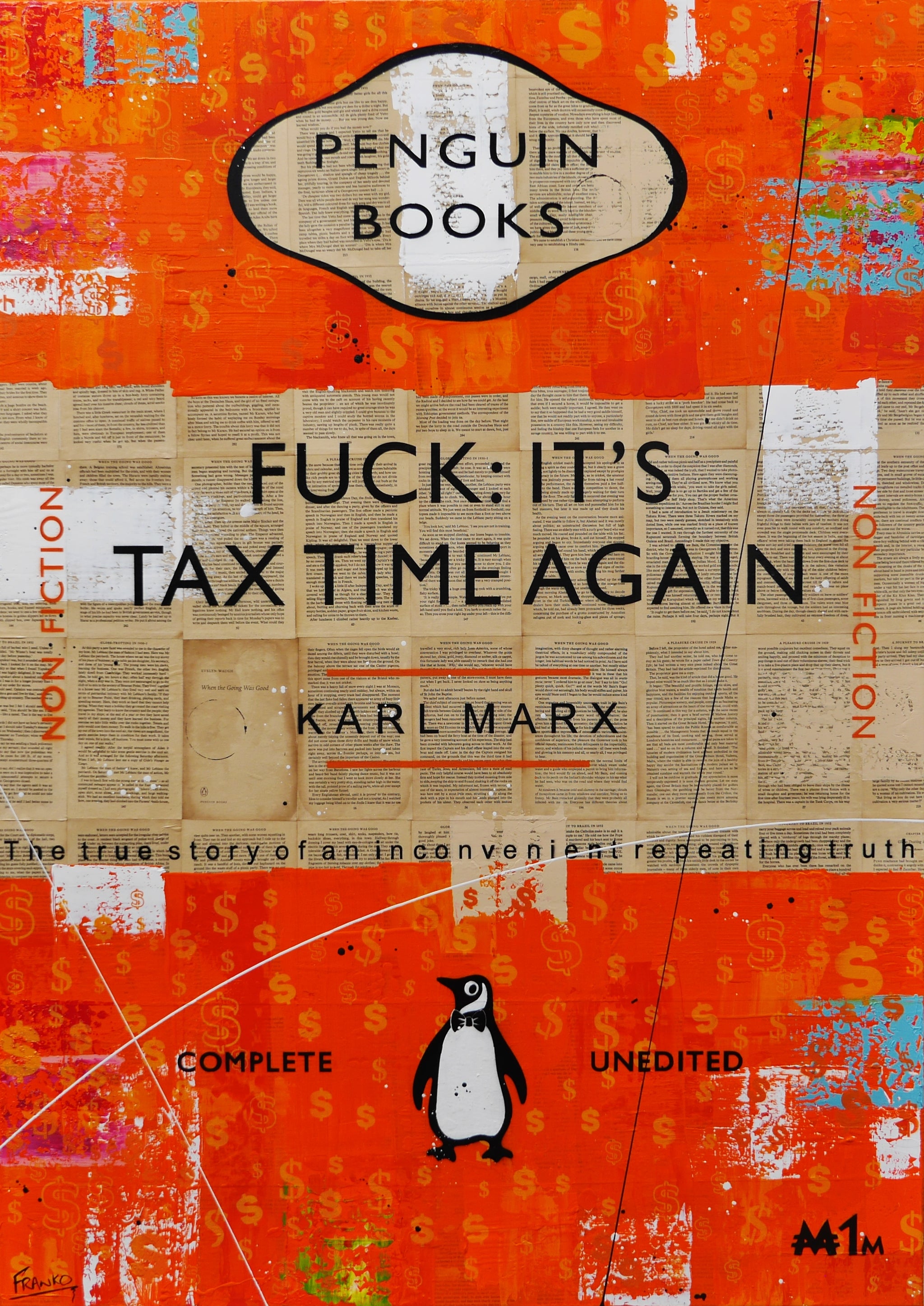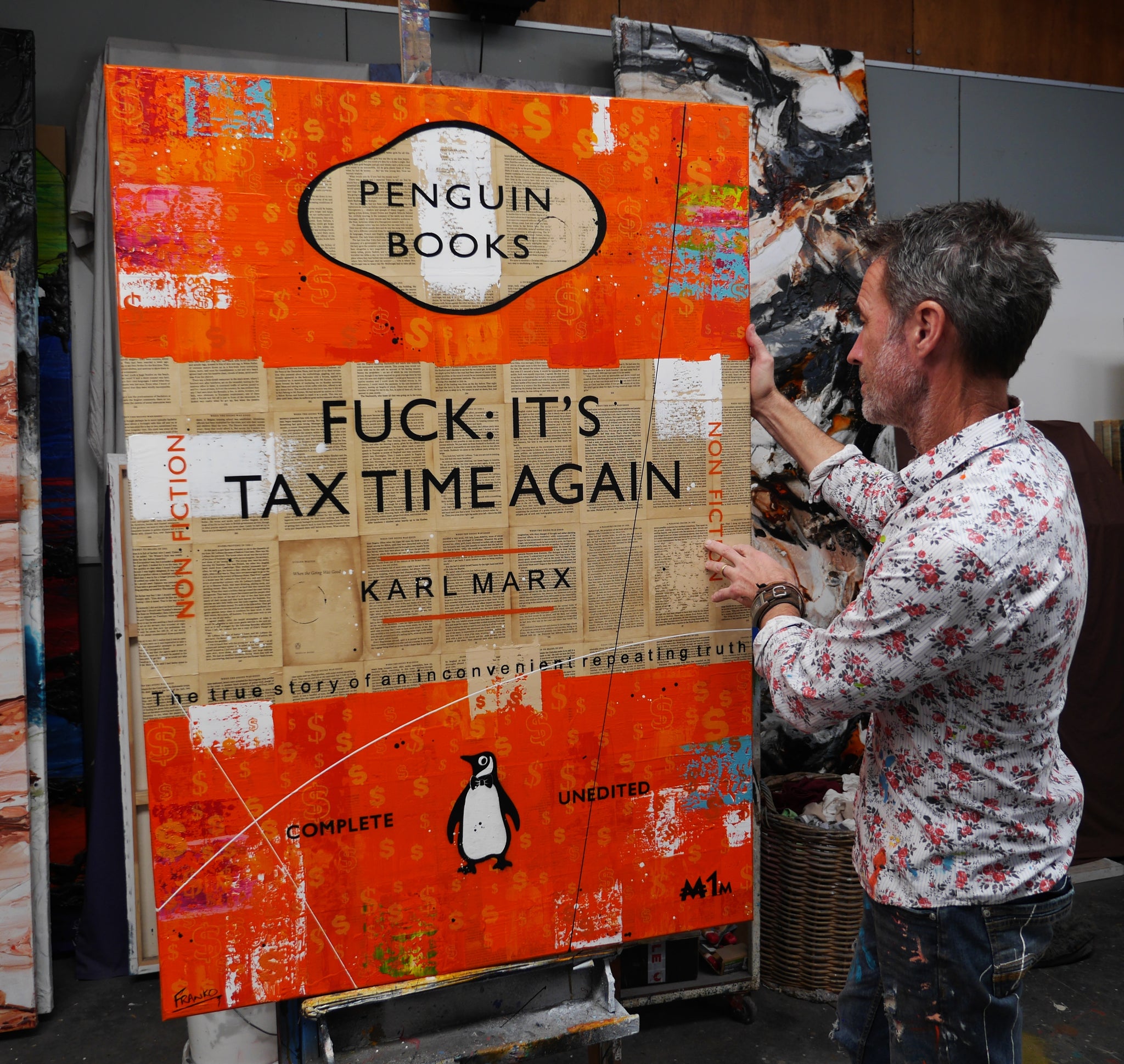 Neverending Story 140cm x 100cm Tax Time Urban Pop Book Club Painting (SOLD)-book club-[Franko_Artist]-[The_Block]-[Dream_Homes]-[ideas]- [Grand_Designs]-Franklin Art Studio