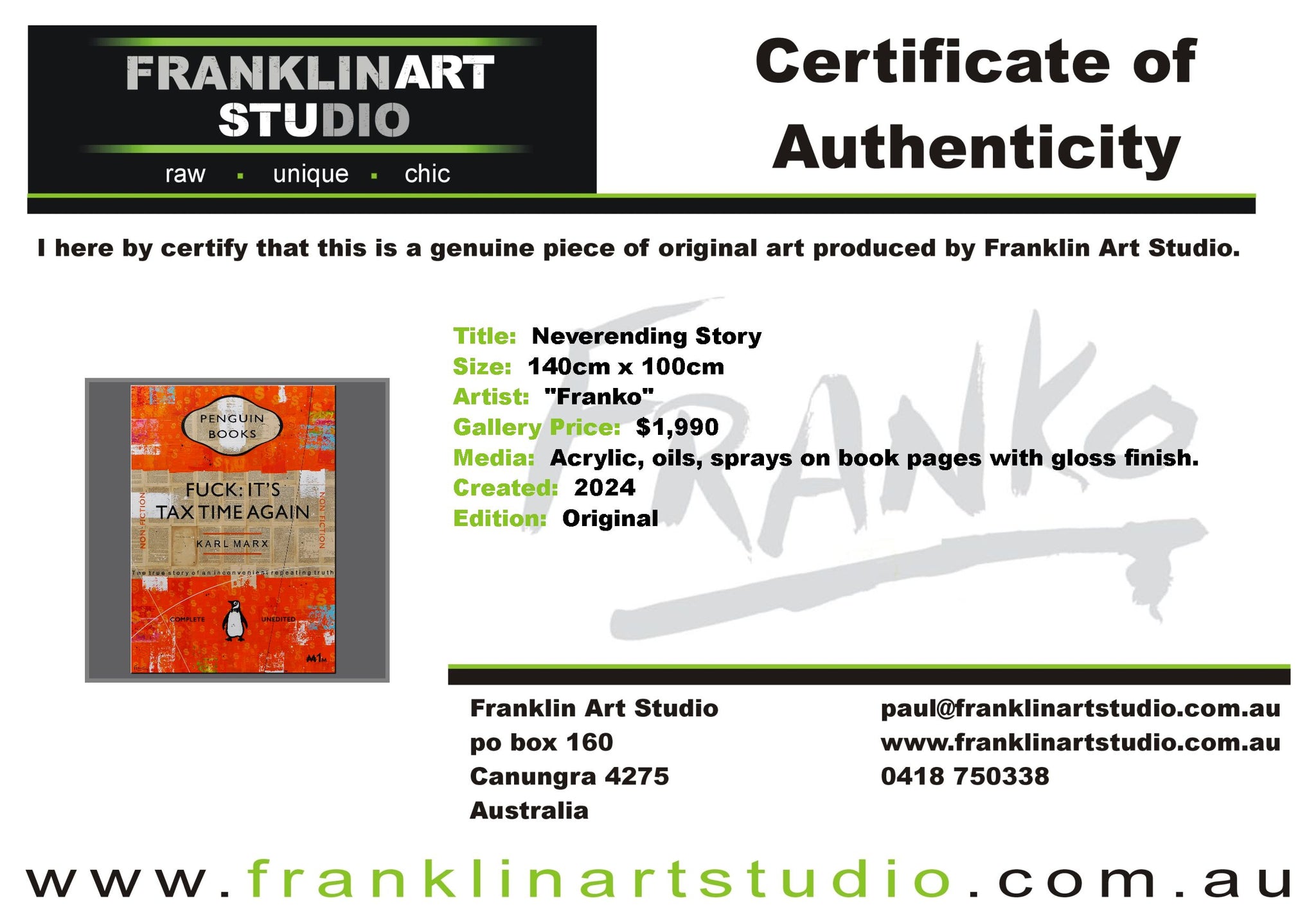 Neverending Story 140cm x 100cm Tax Time Urban Pop Book Club Painting (SOLD)-book club-[Franko_Artist]-[The_Block]-[Dream_Homes]-[ideas]-[Grand_Designs]-[Art_Lover]-Franklin Art Studio