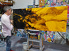 Hey there spunky art lover! Thank you for checking out the gorgeous... "Solar." This stunner features shades of golden yellow, rust, oxide and black acrylics, inks and oils.
