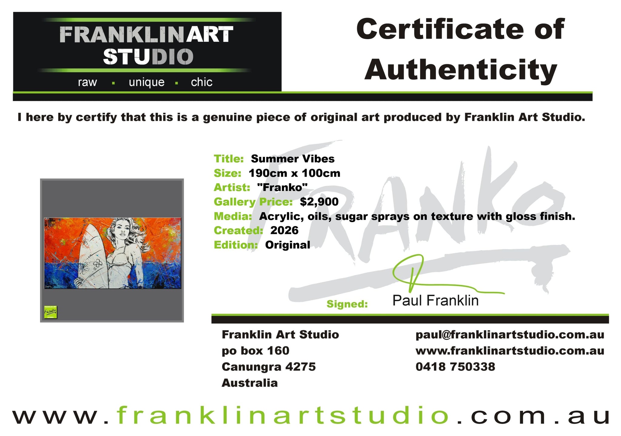 Global shipping is included in the listed prices however, if you happened to be in an extremely remote area or country, we may put our hand up and ask for a little bit of monetary assistance. We package the paintings securely in twin walled, reinforced, CUSTOM MADE “Franko” cartons, with additional protective inserts & of course the painting is wrapped in bubble wrap and often felt, for rub protection. We are the consummate professionals in all that we do. Our trusted freight partners are TNT, TOLL and DHL. Often with larger pieces and local deliveries, we arrange direct delivery with our own driver.