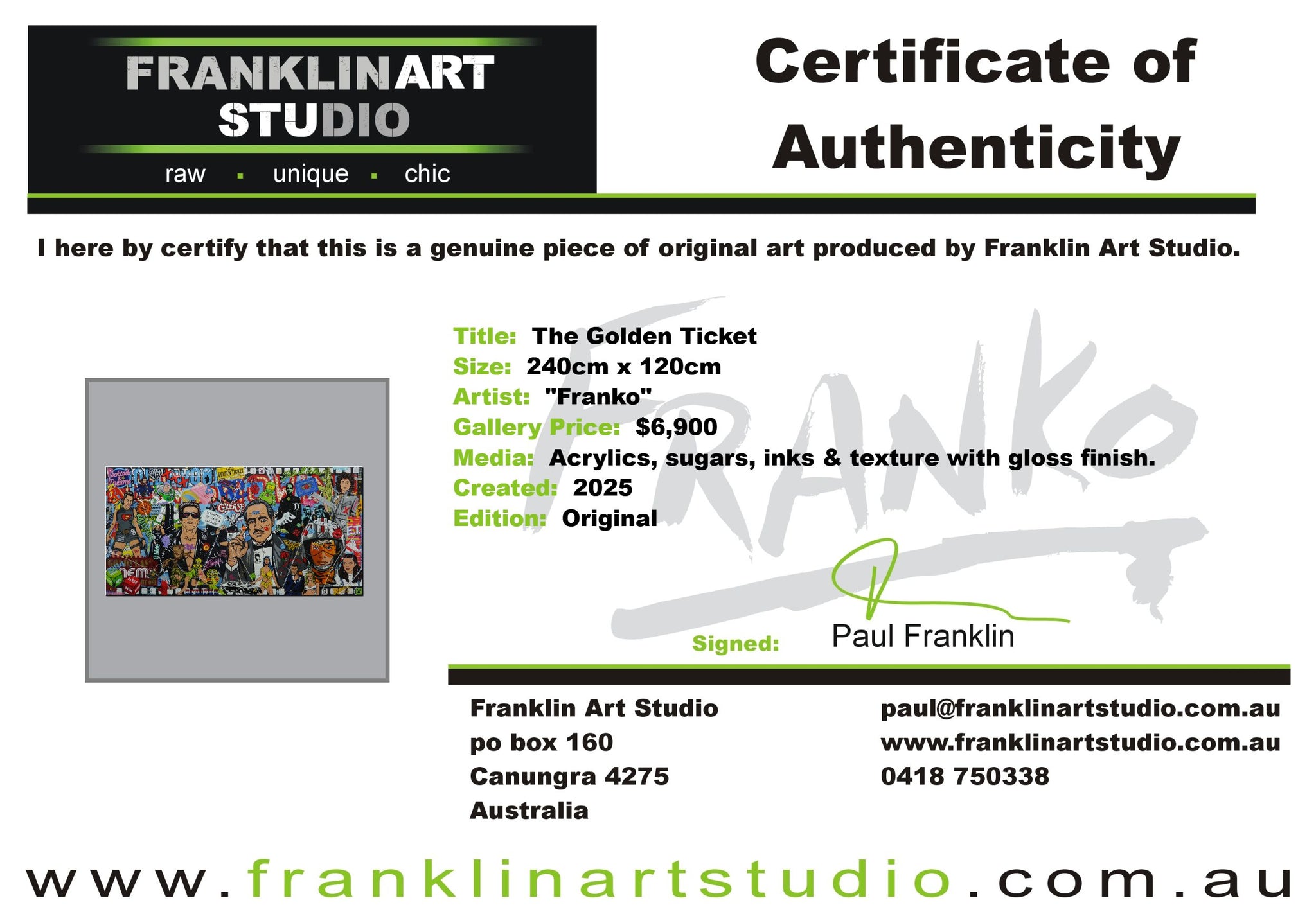 The Golden Ticket 240cm x 120cm Textured Urban Pop Art Painting